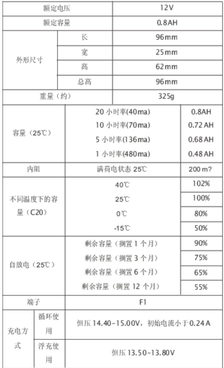 型号:12V0.8AH