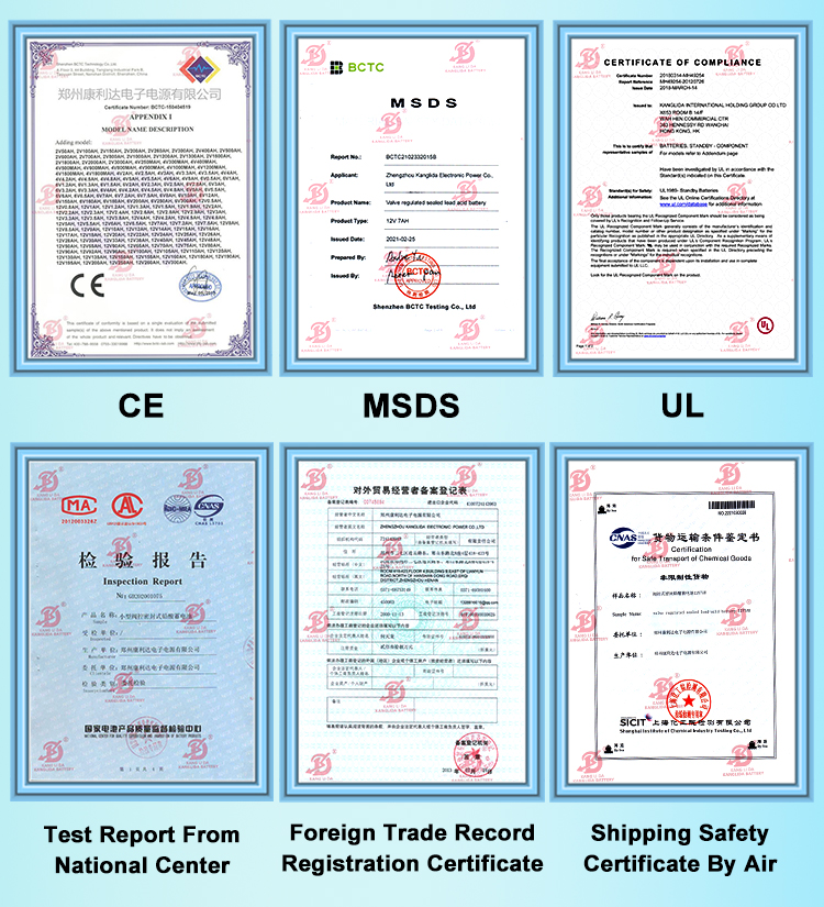 (5). Certificates--CE&UL&MSDS certification and National Center For Quality Supervision and Inspection of Battery Products test approved