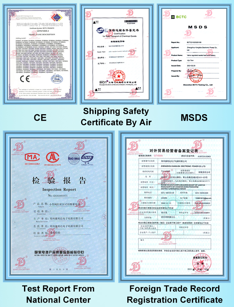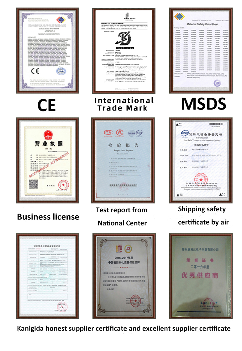 5. Certificates--CE&MSDS certification and National Center For Quality Supervision and Inspection of Battery Products approved